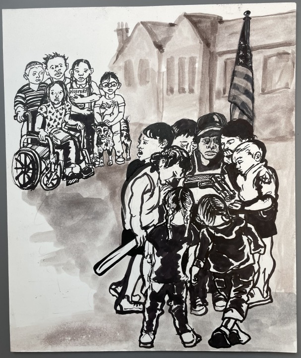 abuses of power. This exhibition combines the powerful artwork of Sue Coe with the lucid writing of Stephen F. Eisenman, in highlights from their new book, "The Young Person’s Illustrated Guide to American Fascism.”