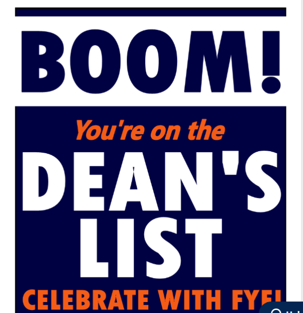 Are you a first-year (freshman) student who made Dean's List this fall semester? Congratulations! First Year Experience (FYE) wants to celebrate with you!!