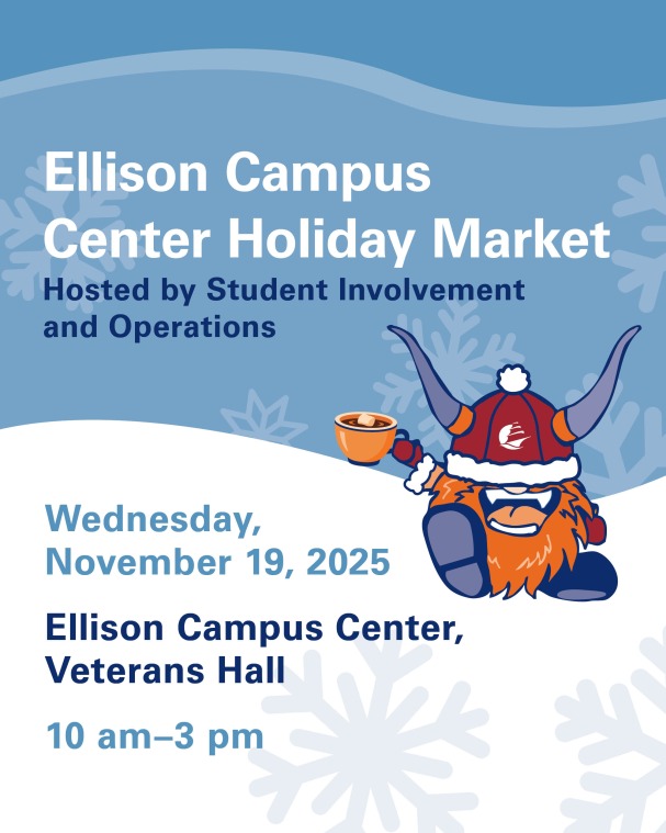Student Involvement and Operations is proud to host the second annual Holiday Market at the Ellison Campus Center. Featuring ten local vendors, this festive event offers unique handmade goods, seasonal treats, and artisan products. It’s a wonderful opportunity to support local businesses, discover one-of-a-kind gifts, and enjoy the holiday spirit.